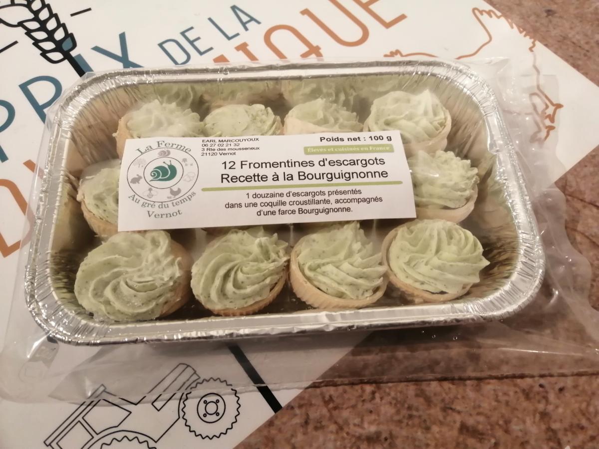 Une douzaine d'escargots présentés dans une coquille croustillante, accompagnés dune farce Bourguignonne. Tout se mange !