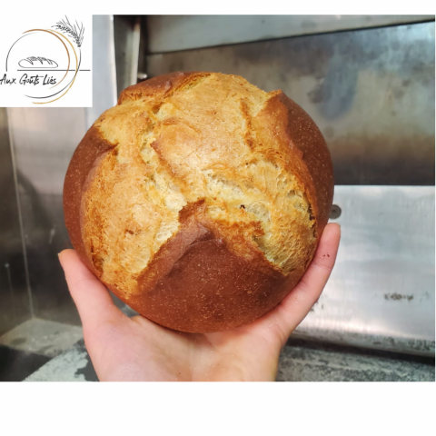Pain au levain fabriqué à partir de notre farine fermière bio type 80 moulue sur meule de pierre.