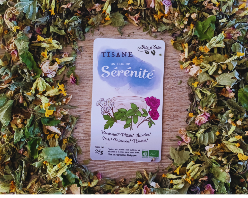 Notre Brin de Sérénité, contribue a apporter calme et équilibre à notre quotidien. Tous nos ingrédients sont soigneusement sélectionnés et cultivés par nos soins selon les principes de l'agriculture biologique, respectueux de l'environnement et de votre bien-être.
