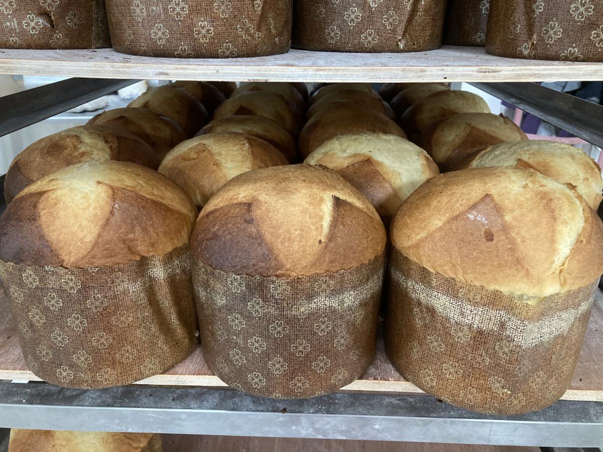 Brioche au levain aromatisée à la pâte d'orange. Cette brioche moelleuse est fabriquée à partir de levain de Panettone. La fermentation particulière de ce levain permet d'obtenir des produits très moelleux, de longue durée de conservation (environ 1 semaine pour ces brioches dans leur sachet) et un goût subtil lié à la fermentation naturelle.