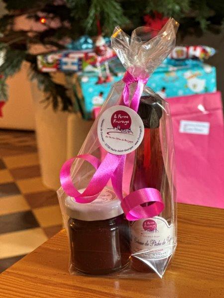Cadeau Sachet Beurre de fruits Bio 50 g et Crème de fruits Bio 18% 3 cl Tout à la Pêche de vigne !