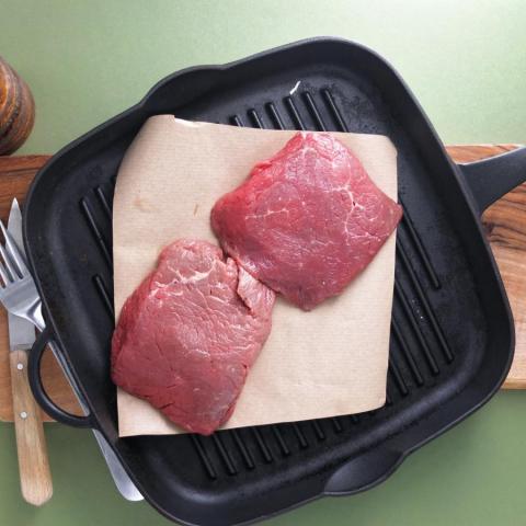 Beefsteak, conditionné par 2, (viande charolaise). Boeuf né et élevé à la ferme, à Beurey-Beauguay.