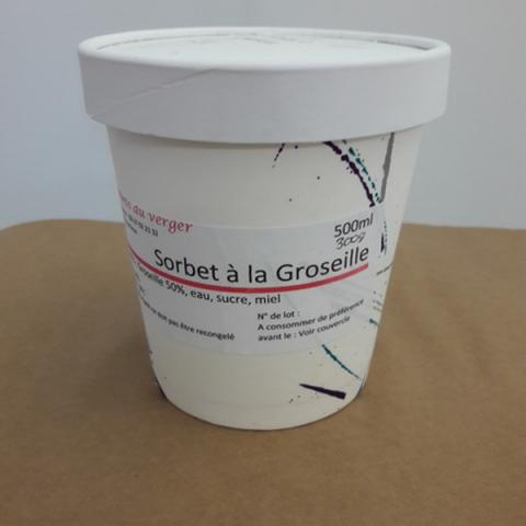 Sorbet Groseille : Groseille 50%, eau, sucre, miel