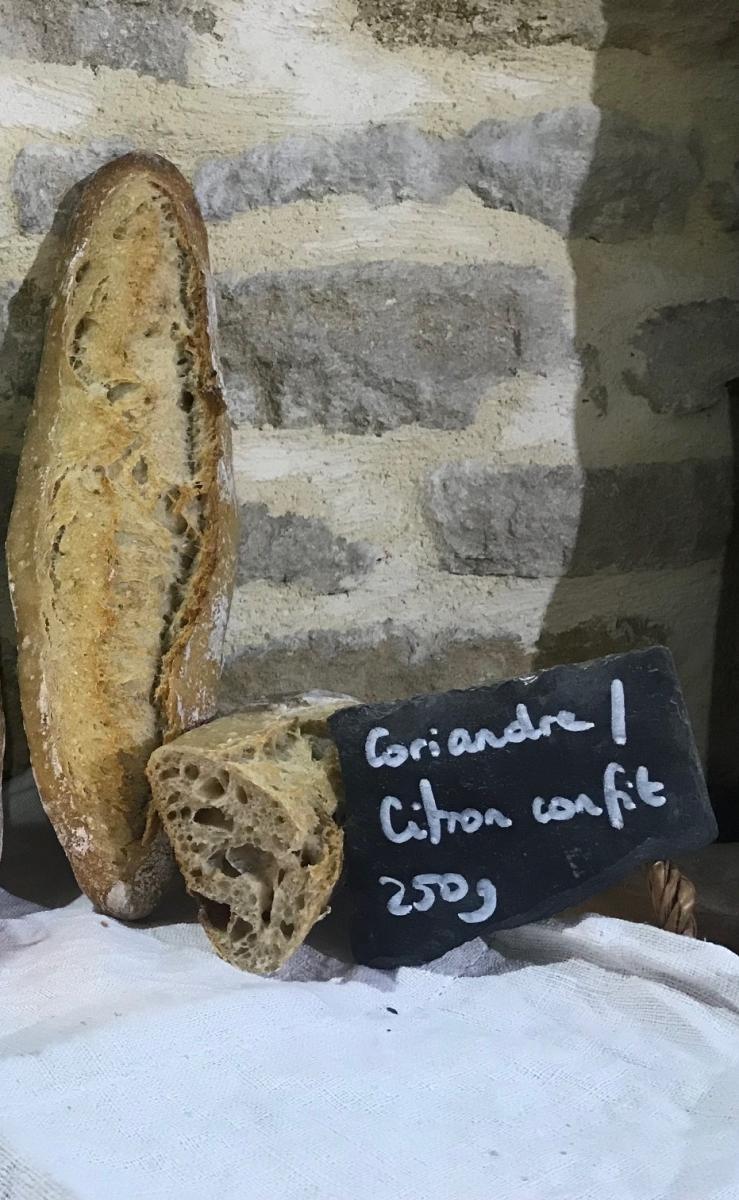 Baguette de pain au levain enrichi en graines de coriandre et écorces de citron confit au sel.