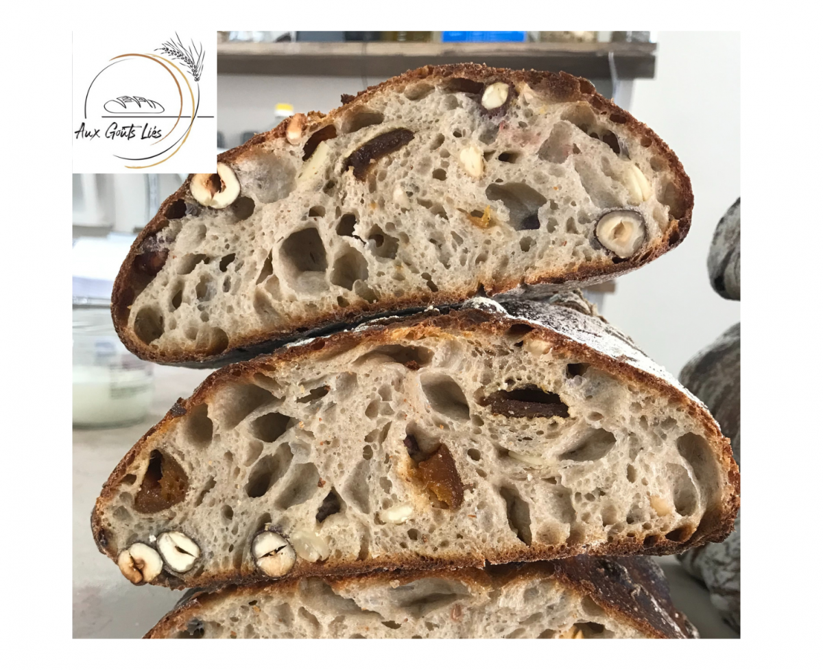 /!\ Rupture d’approvisionnement en noisettes et abricots secs bio : temporairement le pain sera aux amandes torréfiées, cranberries et jus de pomme.