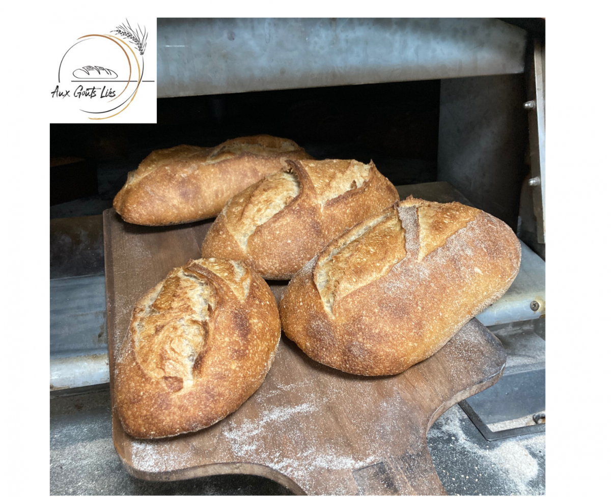Pain au levain fabriqué à partir de notre farine fermière bio type 80 moulue sur meule de pierre.