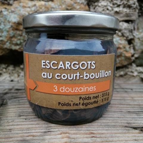 Chairs d'escargot (Hélix Aspersa Maxima), eau, vin (contient des sulfites), carotte, poireau, fenouil, oignon, sel, épices.